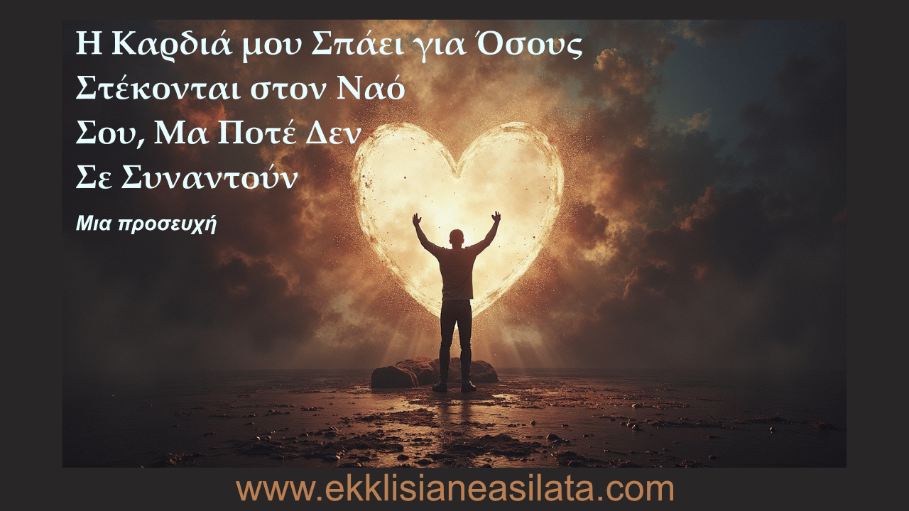 Η Εκκλησία είναι ιερή, ναι - ουράνιο νοσοκομείο, σύναξη των πιστών, όπου είμαστε οικογένεια εν Χριστώ. Προσερχόμαστε μαζί για να προσφέρουμε την Ευχαριστία, να λάβουμε το άχραντο Σώμα και Αίμα Σου, να ενισχυθούμε ως ένα Σώμα. Μα ακόμα και εκεί, πού είναι ο Ιησούς για τόσους; Στέκεται στην πόρτα κάθε καρδιάς και χτυπά (Αποκ. 3:20), υπομονετικός, γεμάτος λαχτάρα, μα τόσο συχνά αγνοημένος μέσα στα τελετουργικά που γίνονται για έγκριση, για χάρη της παράδοσης, από φόβο ανθρώπινης κρίσης και όχι από άγιο φόβο Θεού. Η ψυχή μου θλίβεται γιατί έχω γευτεί -ακόμα και μέσα στη δική μου αθλιότητα- τι σημαίνει να πέφτω μπρούμυτα σε μια ήσυχη γωνιά, μόνος μαζί Σου, κλαίγοντας μέχρι να στερέψουν τα δάκρυα, ικετεύοντας για έλεος, ικετεύοντας το φως Σου να διαπεράσει το σκοτάδι μου. Σ' εκείνες τις στιγμές, οι κανόνες ξεθωριάζουν· τα εξωτερικά γίνονται δευτερεύοντα. Μένεις μόνο Εσύ - η αγάπη Σου, η συγχώρεσή Σου, η κλήση Σου να μείνω εν Σοί. Γιατί τόσοι λίγοι αναζητούν αυτό το κρυφό μέρος; Γιατί δεν φεύγουν μακριά, όπως οι μεγάλοι ασκητές, να παλέψουν στην προσευχή μέχρι την αυγή, μέχρι η καρδιά να ανοίξει και να θεραπευτεί από τη χάρη; Κύριε, ελέησον ημάς πάντας. Ελέησον όσους Σε ακολουθούν εξωτερικά μα δεν Σε άφησαν ακόμα να εισέλθεις εσωτερικά. Ξύπνησέ τους, όπως ξύπνησες εμένα από τον δικό μου λήθαργο. Δώσε τους δάκρυα κατάνυξης, προσευχή της καρδιάς, πόνο που καθαρίζει. Άς Σε γνωρίσουν -όχι σαν μακρινό Βασιλέα που τιμάται εξωτερικά μόνο με πράξεις, αλλά σαν τον Φιλάνθρωπο που περιμένει, με ανοιχτές αγκάλες, να αγκαλιάσει τον άσωτο. Συγχώρεσέ με, Ιησού μου, για τη δική μου σκληρότητα. Κι εγώ υστερώ. Η καρδιά μου σπάει περισσότερο γιατί βλέπω τον εαυτό μου σ' αυτούς -κάποιες φορές ακόμα απαγγέλλω χωρίς αίσθημα, κάποτε εκτελώ χωρίς αγάπη. Συνέτριψέ με πάλι, μέχρι να μείνεις μόνο Εσύ. Έλα, Κύριε. Έλα σε κάθε καρδιά που περιπλανιέται στην Εκκλησία Σου. Άς πέσουμε όλοι στα πόδια Σου -όχι για επίδειξη, αλλά κρυφά, θερμά, με δάκρυα και παράδοση. Γιατί μόνο τότε θα ζήσουμε αληθινά. Μόνο τότε θα Σε γνωρίσουμε. Δόξα Σοι, ο Θεός, εις τους αιώνας. Ελέησόν με τον πρώτο των αμαρτωλών.
